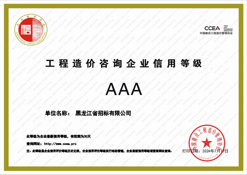 工程造价咨询企业AAA级”信用评价