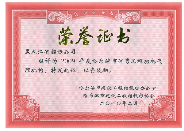 2009年度哈尔滨市优秀工程招标代理机构
