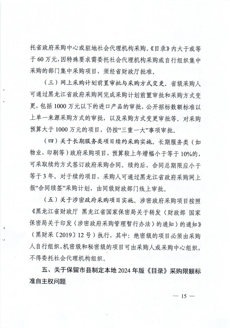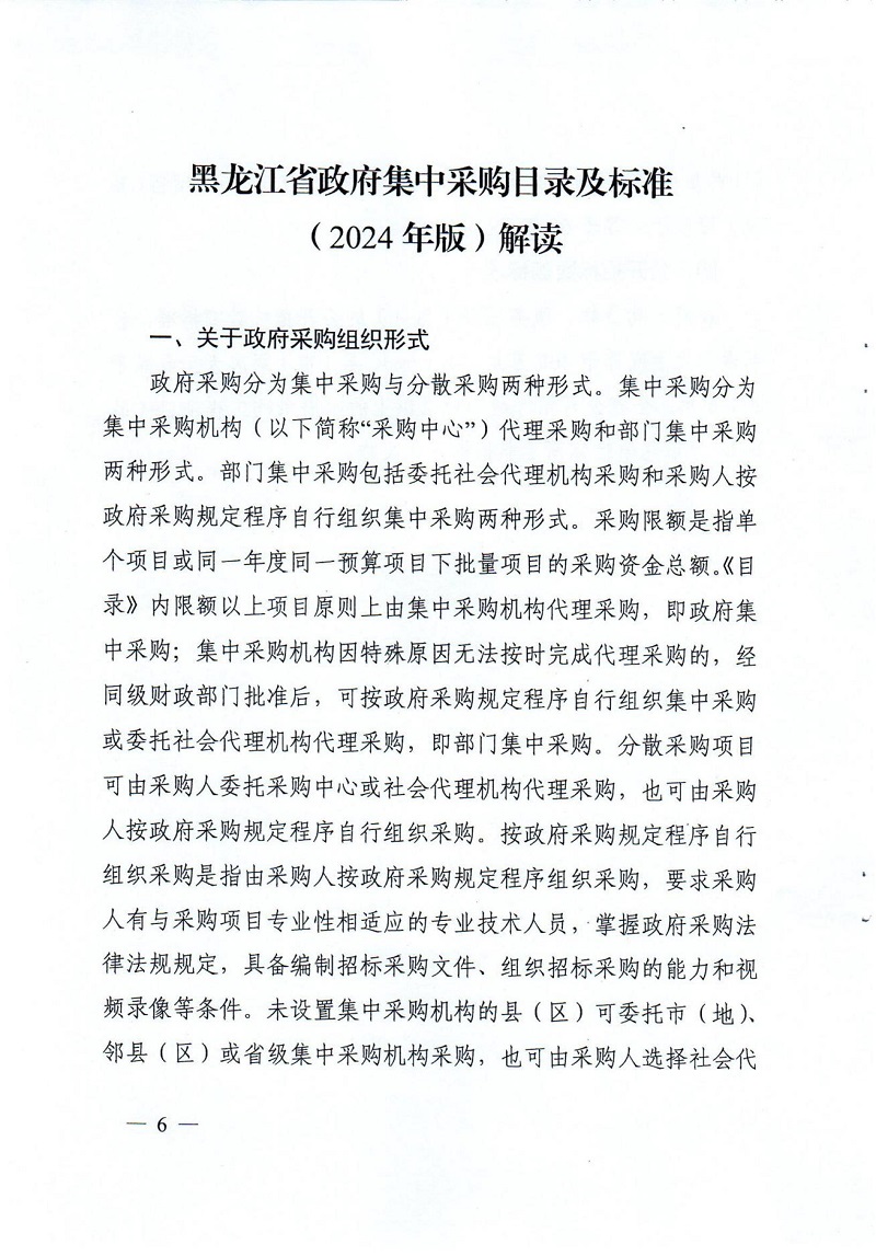黑龙江省财政厅关于印发《黑龙江省政府集中采购目录及标准(2024年版)》及相关解读的通知(黑财采〔2023〕21号)