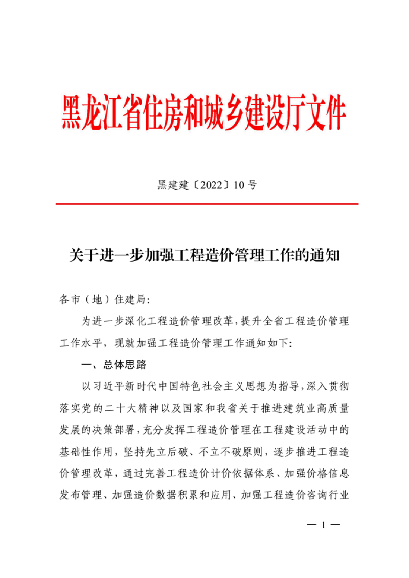 关于进一步加强工程造价管理工作的通知(黑建建〔2022〕10号)