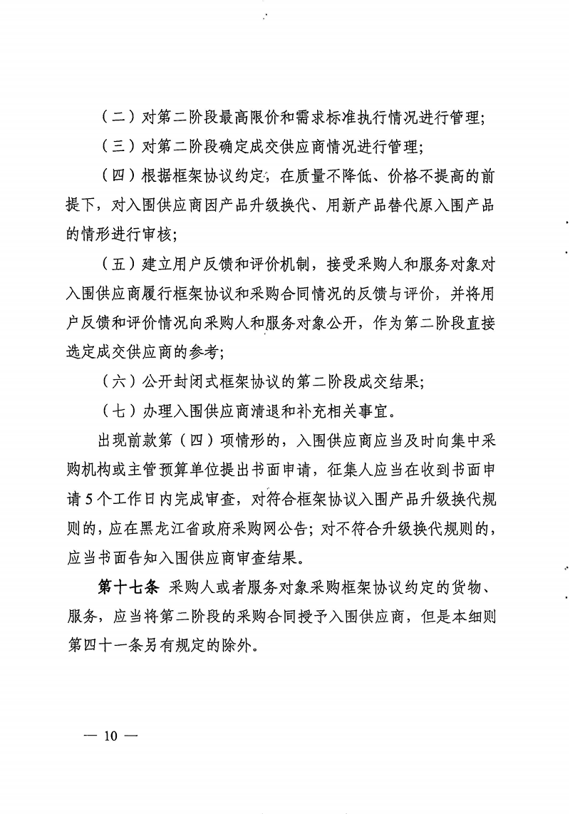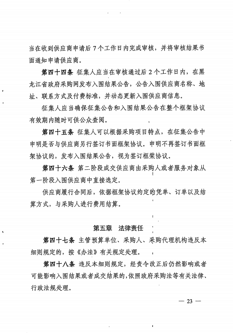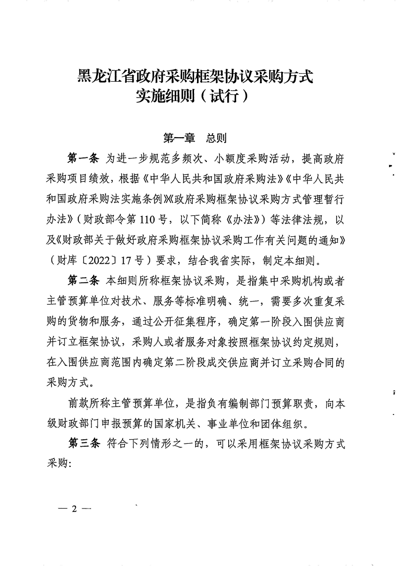 黑龙江省财政厅关于印发《黑龙江省政府采购框架协议采购方式实施细则(试行)》的通知(黑财规〔2023〕13号)